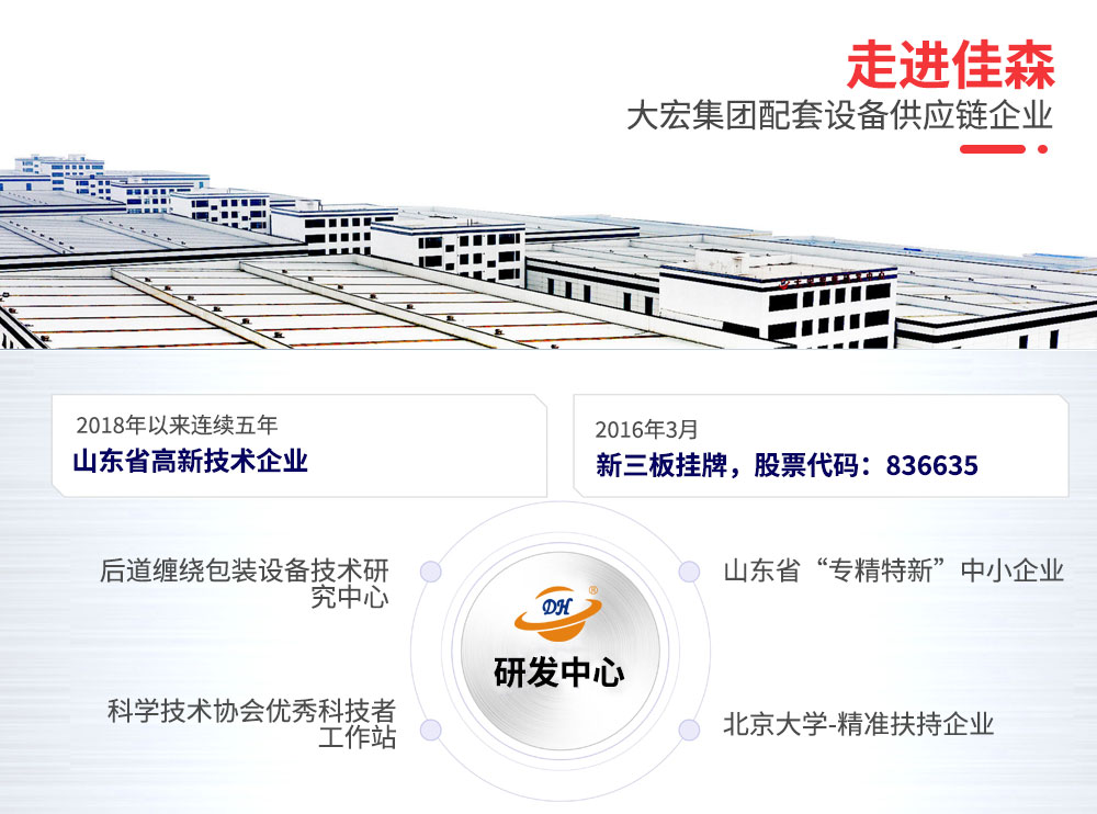大宏佳森小圓筒纏繞機P800,圓筒類貨物全裹包設備主要適用于圓筒狀物體的軸向包裝,實現貨物360度的整體裹包。如無紡布、簾子布、線圈、橡膠制品及造紙(品)等的包裝。其特點:輕巧、靈便、操作簡便。同時可根據包裝的實際需要,選用自動頂出型、壓頂型、圓筒托盤兩用型、自動在線型等設備。